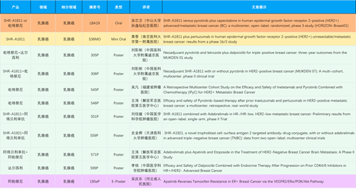 在乳腺癌领域,AG旗舰厅创新产品相关研究共入选1项口头报告、1项简短口头报告、8项壁报和1项电子壁报,共11项研究。吡咯替尼、达尔西利、阿得贝利单抗、瑞康曲妥珠单抗等新老创新药物,均有多篇研究入选,展现出AG旗舰厅医药在乳腺癌领域多年深耕的丰硕成果。